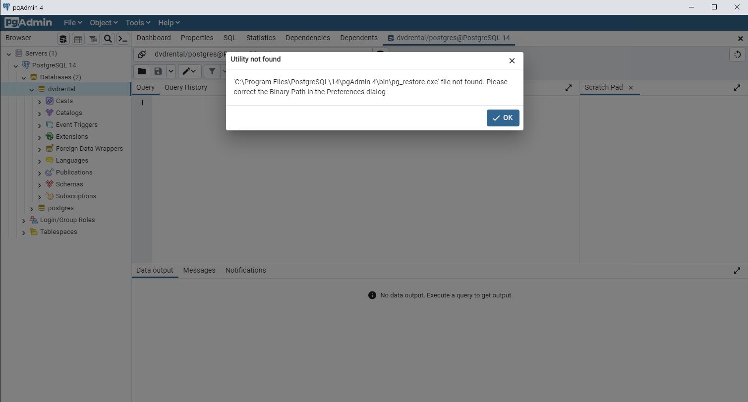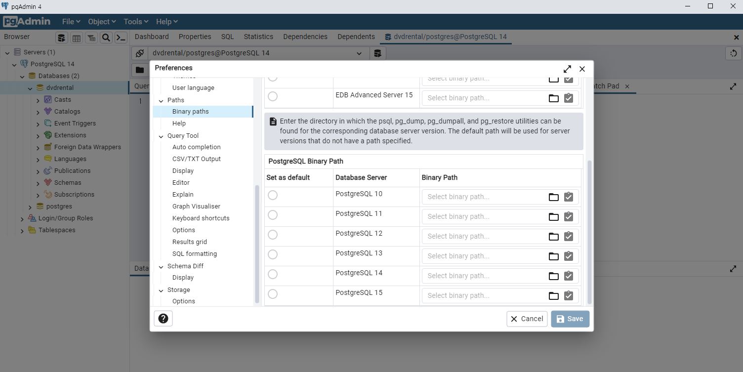 PostgreSQL Please correct the Binary Path in the Preferences dialog 해결 방법