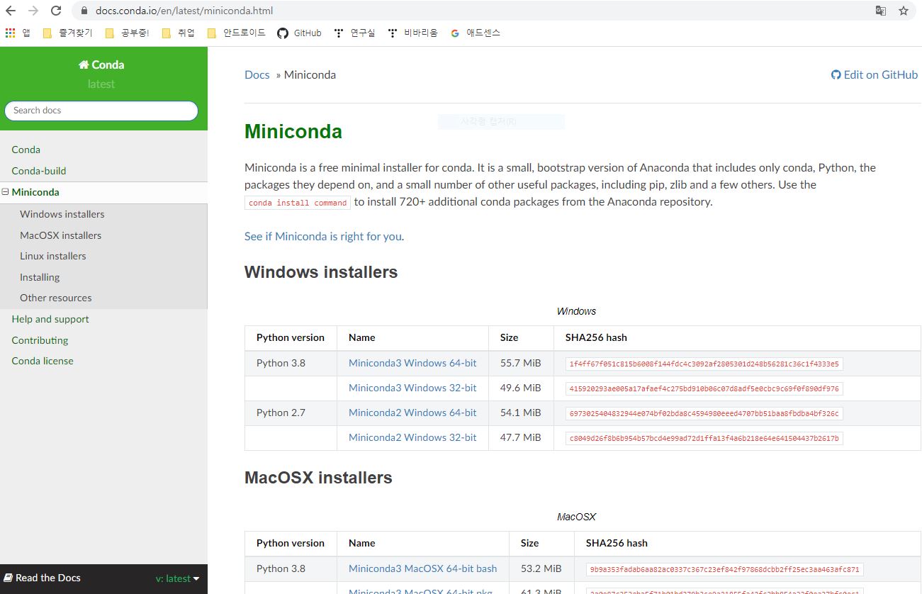 아나콘다에서는 기본적으로 머신러닝과 관련된 라이브러리 등이 포함되어있어서, 간편하게 한번에 설치 가능한 것이 장점이지만, 저는 이번엔 미니콘다를 다운받아서 필요한 라이브러리 등을 직접 설치해보겠습니다.