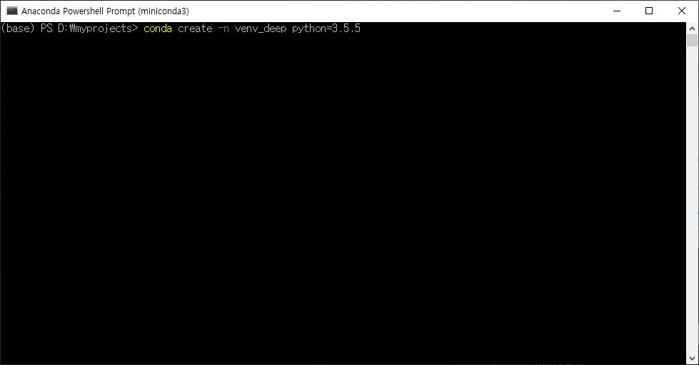 위와 같이 "conda create -n 가상환경명 python=버전" 의 형식으로 가상환경을 만들 수 있습니다.