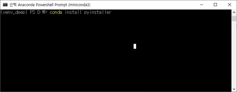 실행창에서 다음과 같은 명령어로 pyinstaller를 설치합니다.