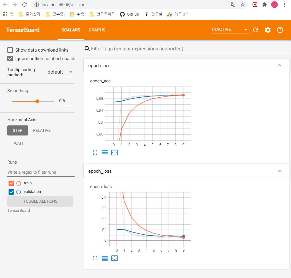 위와 같이 텐서보드를 실행하실 수 있습니다.