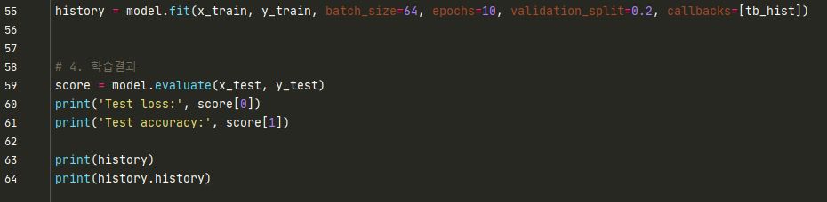 keras에서 model.fit 을 이용하여 학습하면 history 속성을 통해 학습결과를 제공합니다.