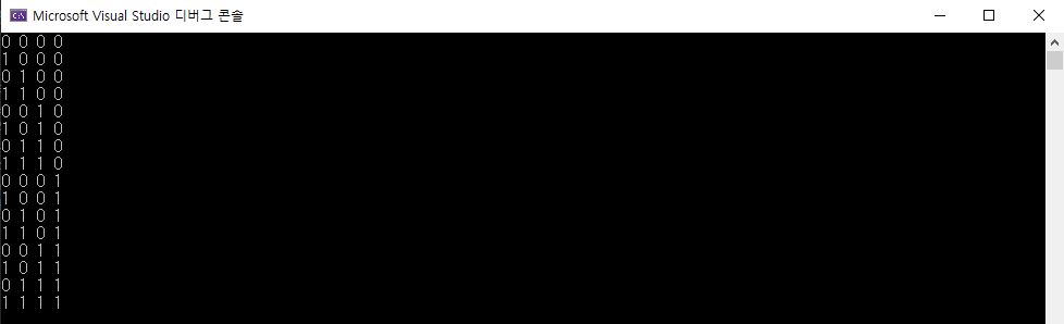모두 다 뽑지 않는 경우는 0 (0000)이 될 것이고, 모두 다 선택하는 경우는 15 (1111)이 될 것이다.
