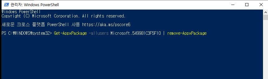 Get-AppxPackage -allusers Microsoft.549981C3F5F10 | remove-AppxPackage
