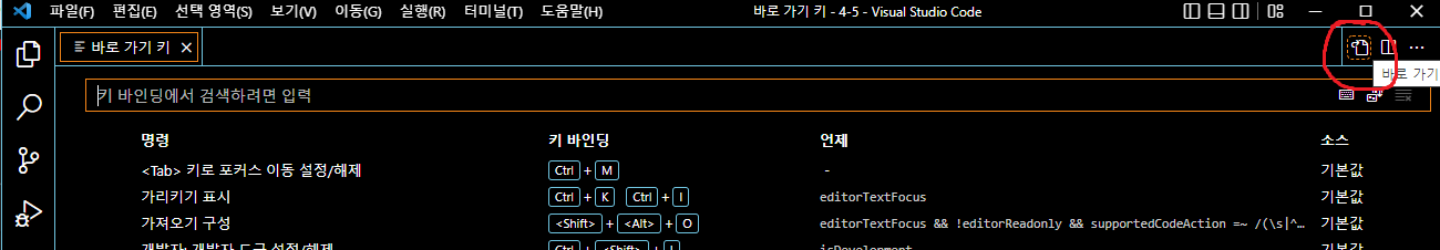 2. 우측 상단에 보이는 바로가기 키 열기를 누릅니다.